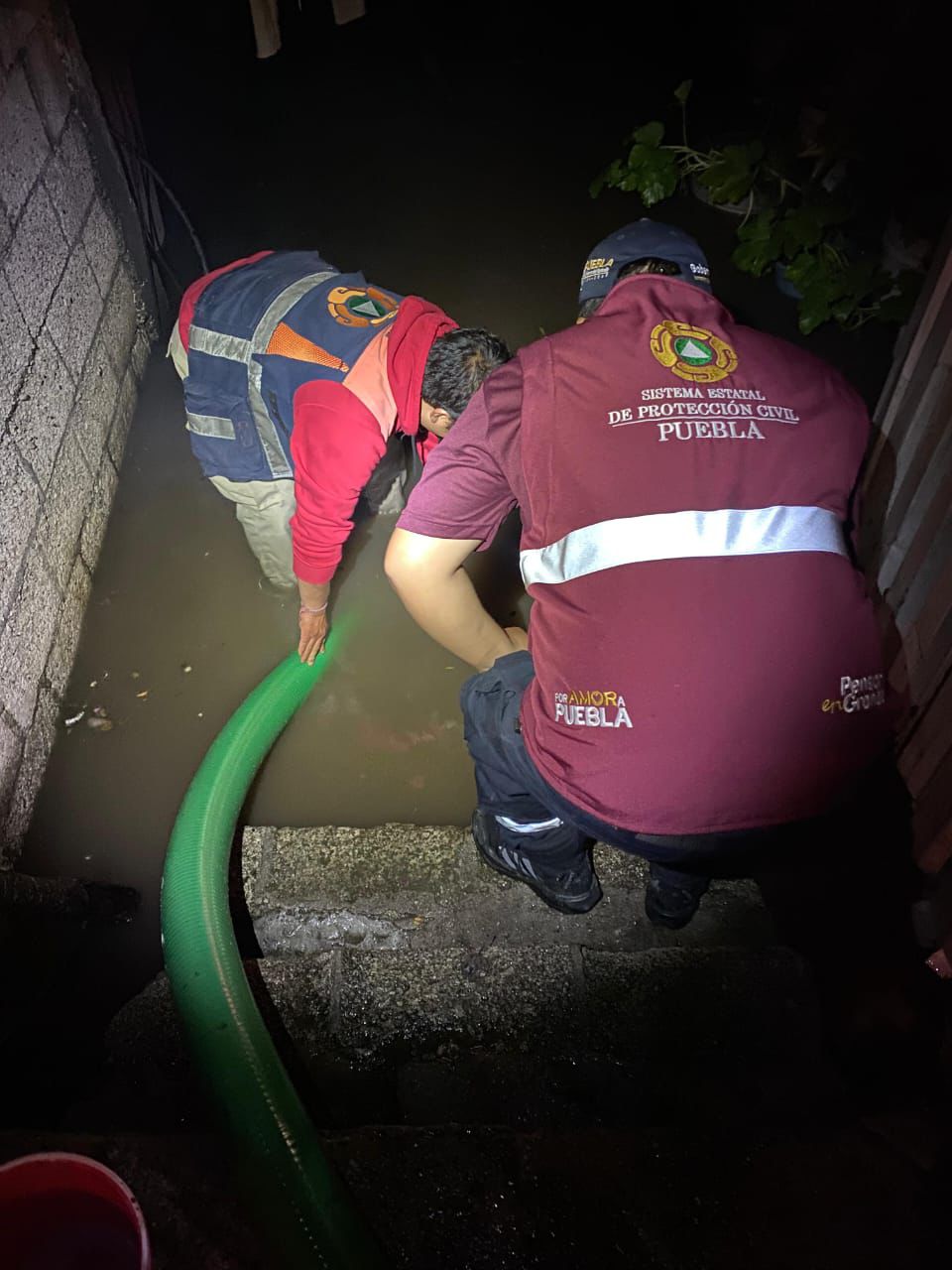 ‍♂️ Personal de Protección Civil del Estado y el ayuntamiento apoyaron con bombas para desalojar el agua.