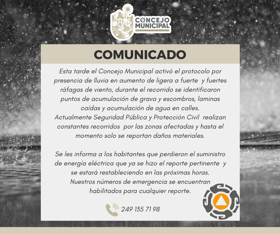 El Concejo Municipal informa que las recientes precipitaciones acompañadas de ráfagas de viento ocasionaron daños materiales en algunas viviendas y calles del municipio.