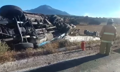 Chalchicomula de Sesma.- Un tráiler cargado con agua embotellada volcó esta mañana sobre la carretera federal El Seco–Esperanza, a pocos kilómetros de Guadalupe El Sabinal. El...
