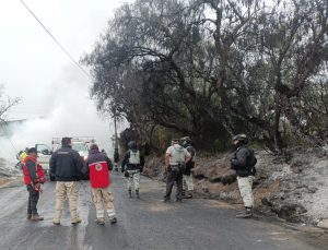 Esta madrugada, alrededor de las 5:00 AM, una pipa de combustible volcó y se incendió en la carretera estatal Cuacnopalan–Cuesta Blanca.