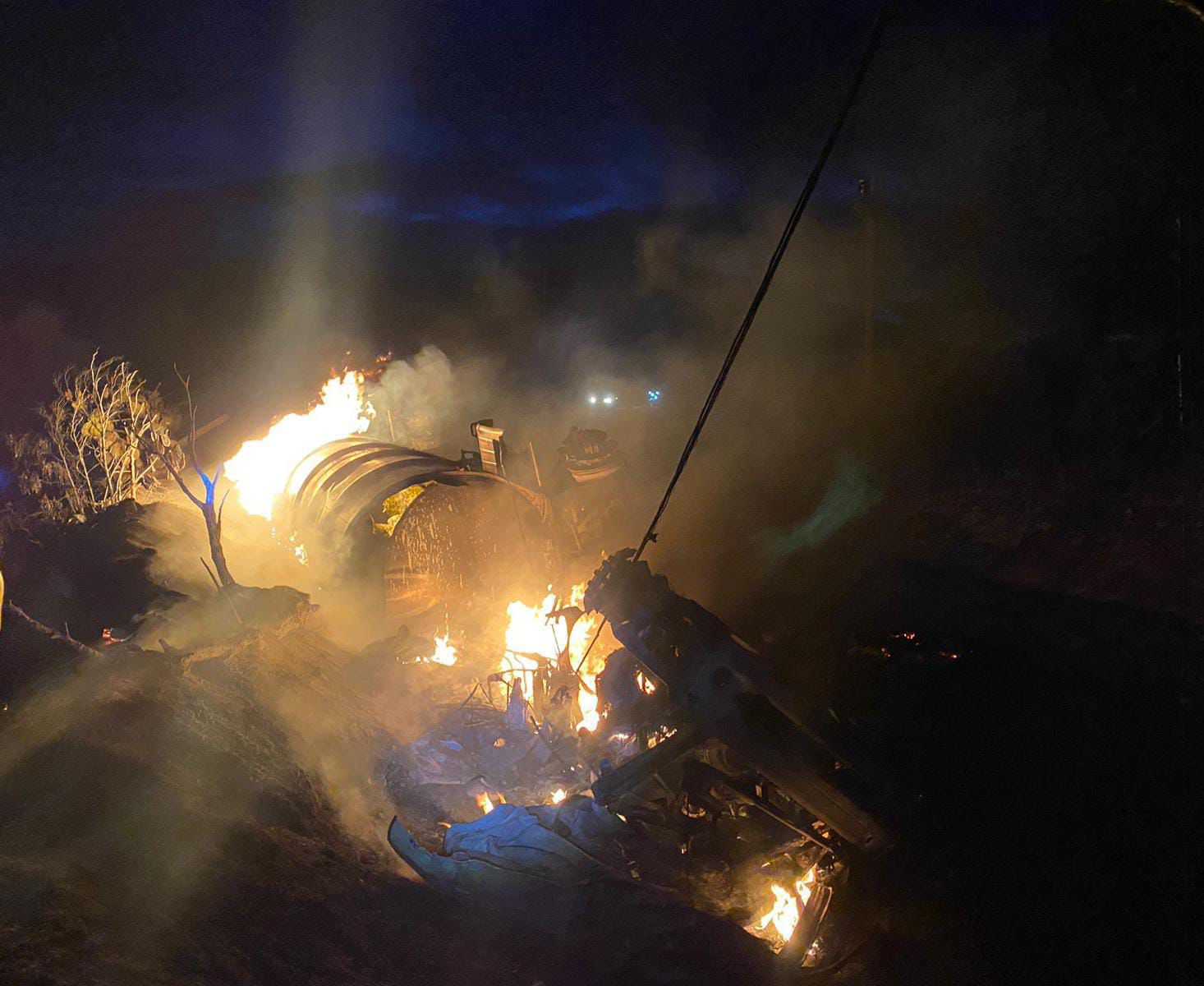Esta madrugada, alrededor de las 5:00 AM, una pipa de combustible volcó y se incendió en la carretera estatal Cuacnopalan–Cuesta Blanca.