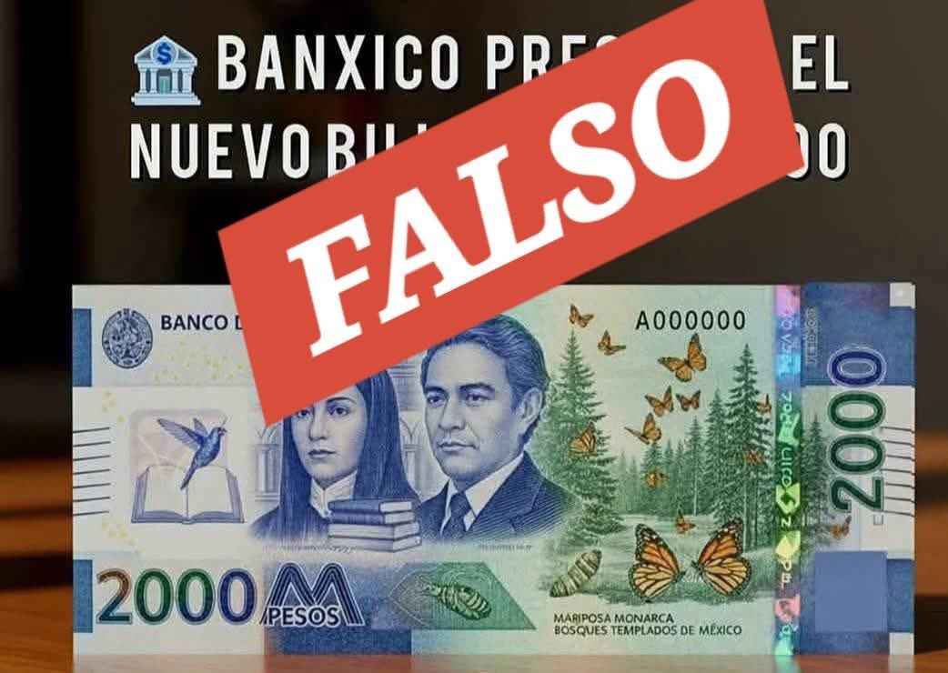 Asimismo, se ha difundido en redes sociales una imagen de un supuesto billete de $2000 pesos, afirmando que ya se encuentra en circulación.
