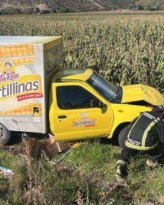 Chalchicomula de Sesma.- Un fuerte accidente se registró la tarde de este viernes sobre la carretera federal El Seco–Esperanza, a la altura de La Ermita, donde una camioneta repartidora de la marca Tía Rosa chocó contra un automóvil color gris plata.