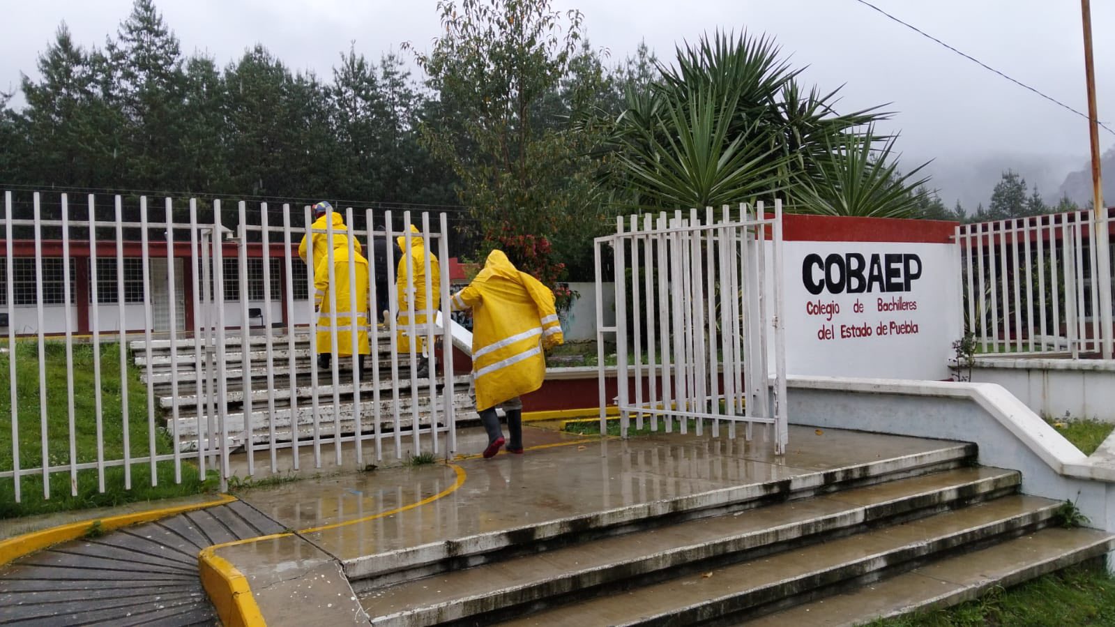 Elementos de Protección Civil del Estado realizaron un recorrido por el COBAEP Plantel 35 de Chilchotla, tras el reporte de una posible inundación en la zona.